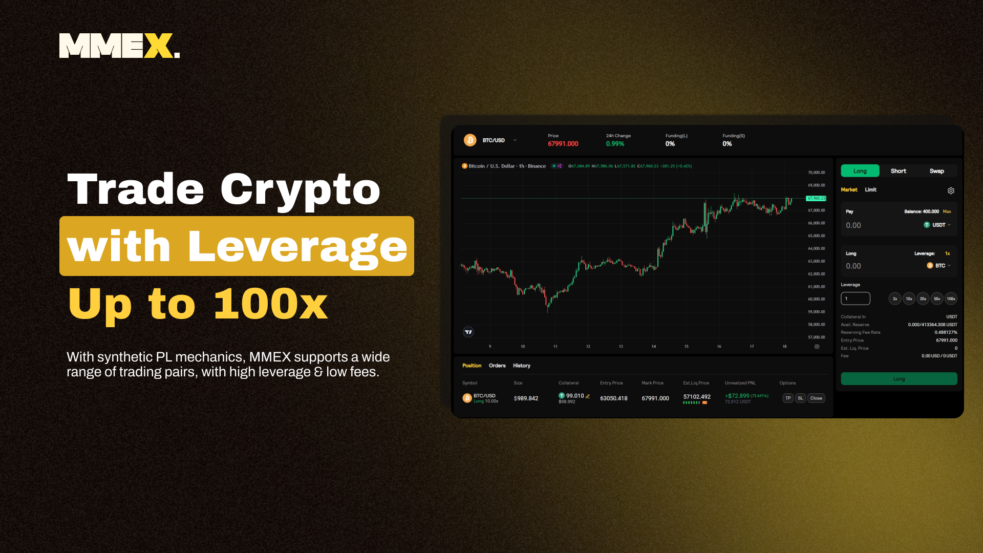 MMEX is a pioneering on-chain derivatives & swap protocol. It provides traders with zero slippage and high leverage trading services utilizing a synthetic architecture to improve capital efficiency.